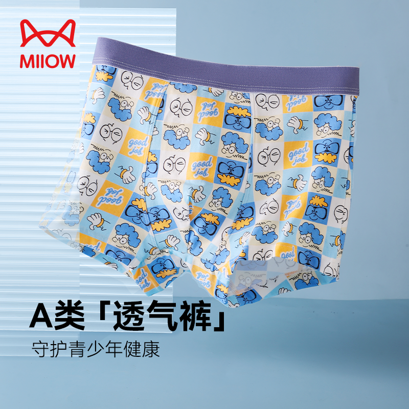 【产品名称:猫人儿童内裤男童纯棉夏季薄款中大童发育期不夹屁屁抑菌平角短裤】