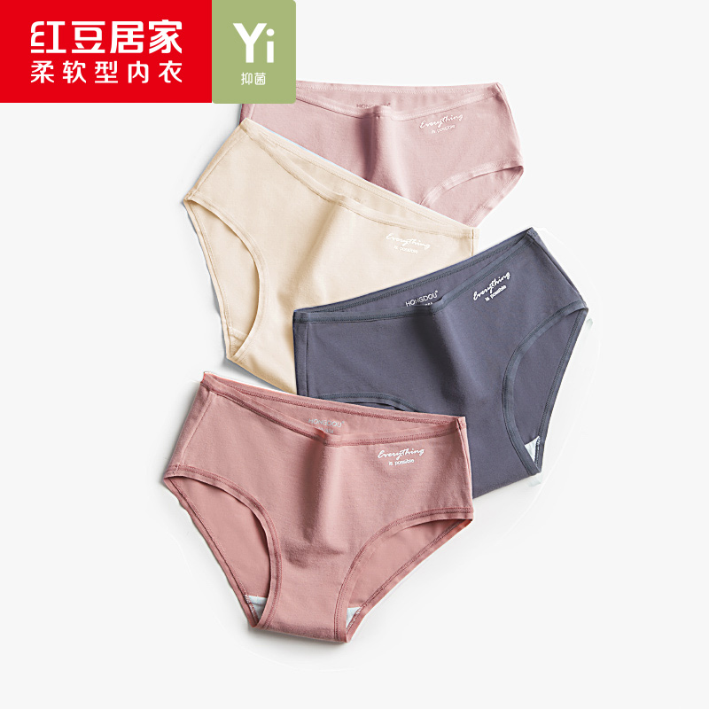 【产品名称:红豆女士内裤抗菌纯棉全棉裆无痕大码少女式透气女生中腰三角裤头】