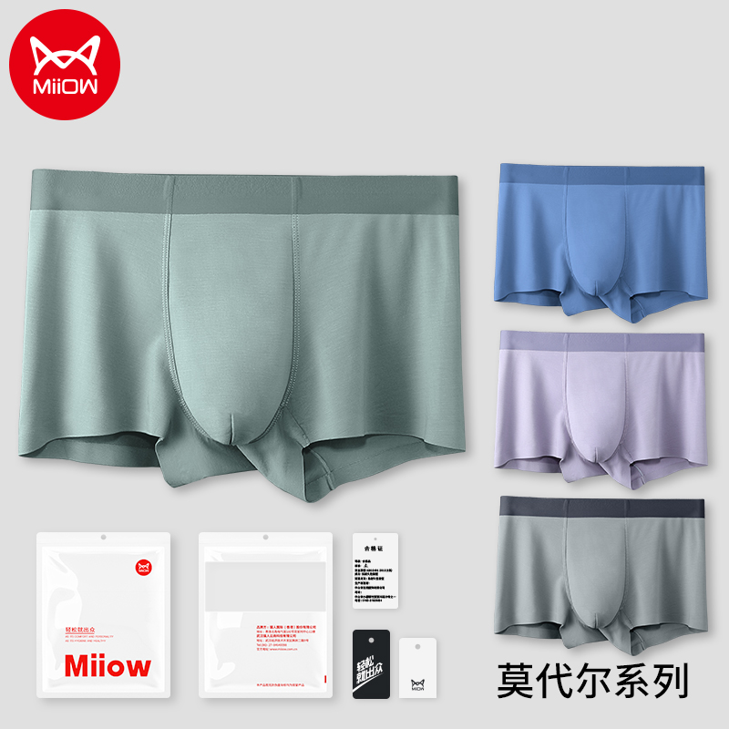 【产品名称:猫人3条装50支莫代尔男士内裤男四角裤舒适平角裤头夏季薄短裤衩】