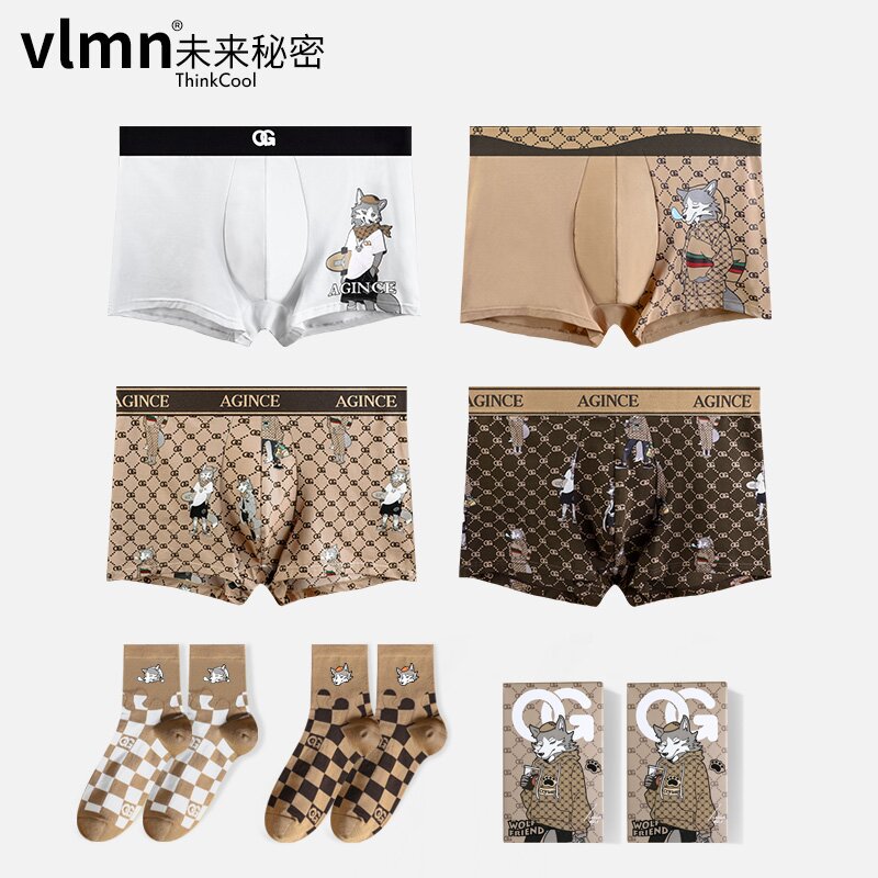 【产品名称:vlmn/未来秘密&AG联名男士内裤男生纯棉印花平角四角裤棉袜送男友】