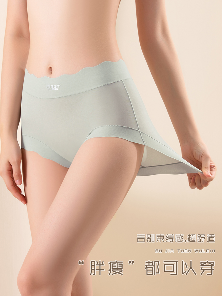 【产品名称:蕉轩内裤女高腰蚕丝裆抗菌透气中腰收腹无痕大码女士平角内裤薄款】