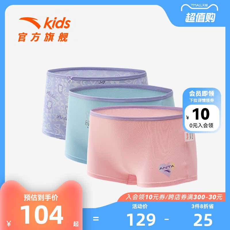 【产品名称:安踏儿童3条装内裤2023新款男童平角内裤四角裤小学生女童棉短裤】