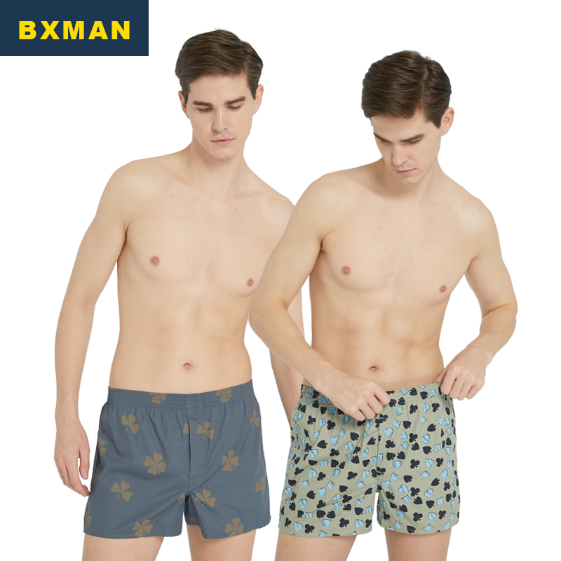 【产品名称:BXMAN宽松阿罗裤男士内裤平角裤纯棉梭织中腰家居短裤男睡裤印花】