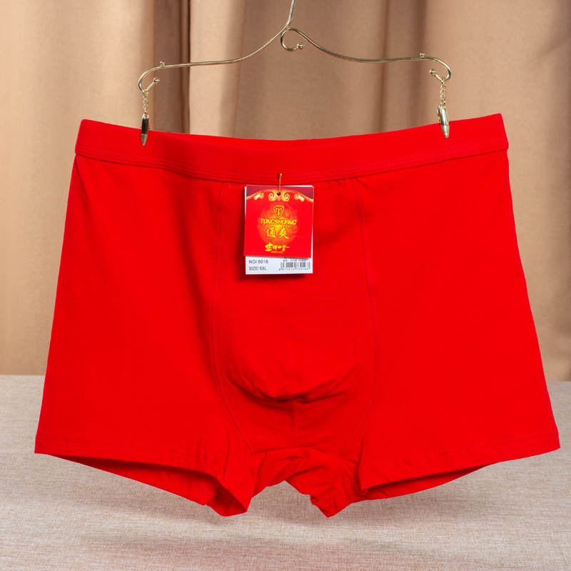 【产品名称:高腰红内裤男平角本命年大红色纯棉弹性加肥佬加大码四角裤中年】