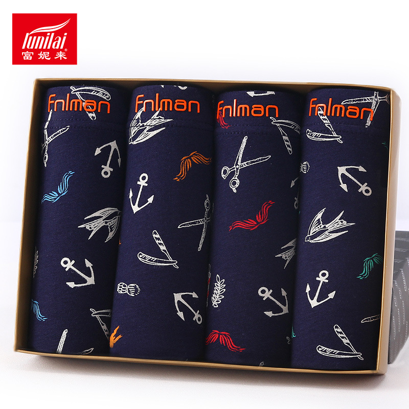 【产品名称:4条装富妮来男士莫代尔内裤宽松大码青年中腰平角裤加肥加大裤衩】