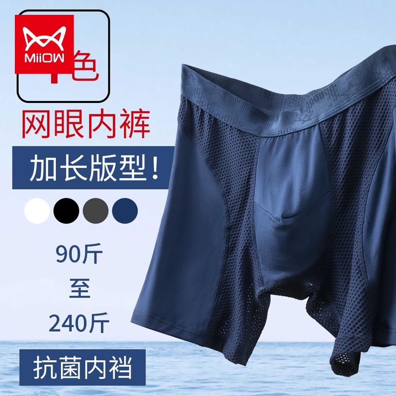 【产品名称:猫人男士加长运动内裤男平角裤莫代尔防磨腿跑步大码四角短裤头】
