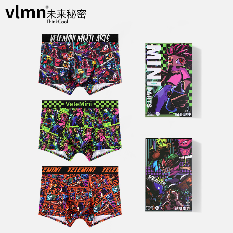 【产品名称:vlmn潮牌男士内裤纯棉夏季抗菌赛博朋克风男生四角裤衩/秘密特工】