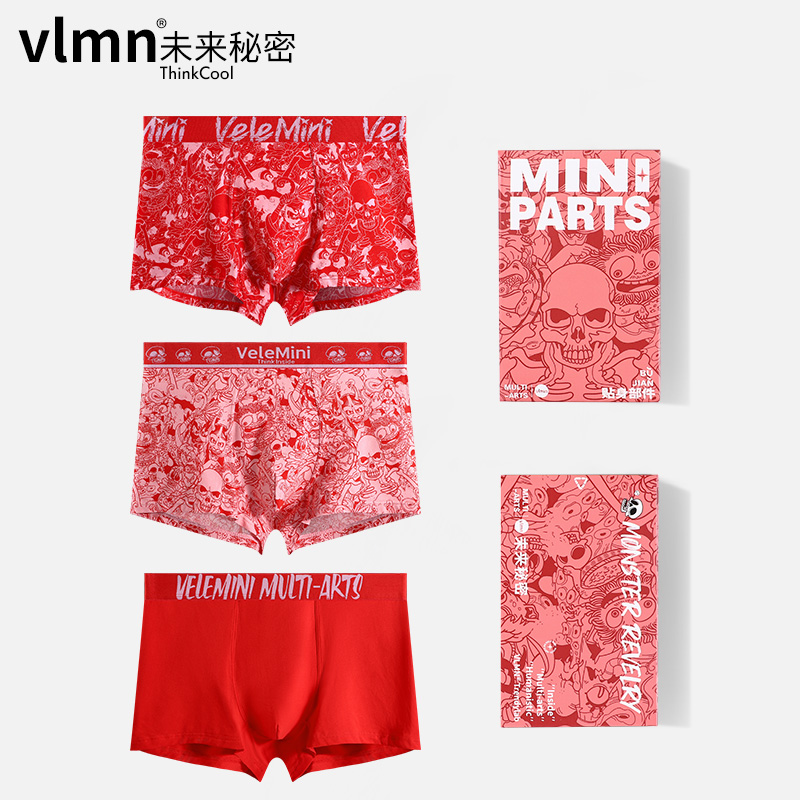 【产品名称:vlmn/未来秘密本命年男士红内裤男纯棉印花平角裤送男友/怪物狂欢】