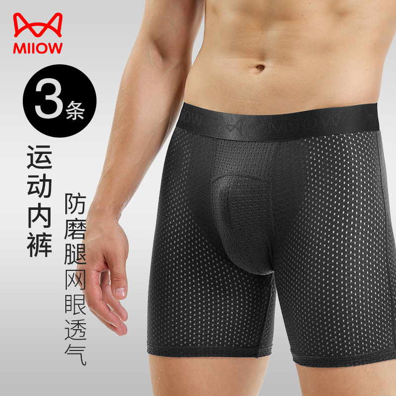 【产品名称:猫人冰丝内裤男透气舒适防磨腿加长加大码平角裤男生运动跑步底裤】
