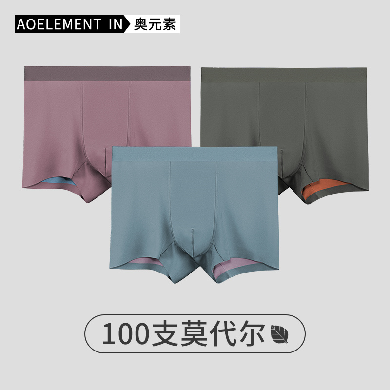 【产品名称:100支内裤男双面零感无痕莫代尔舒适夏季薄款四角短裤男生平角裤】