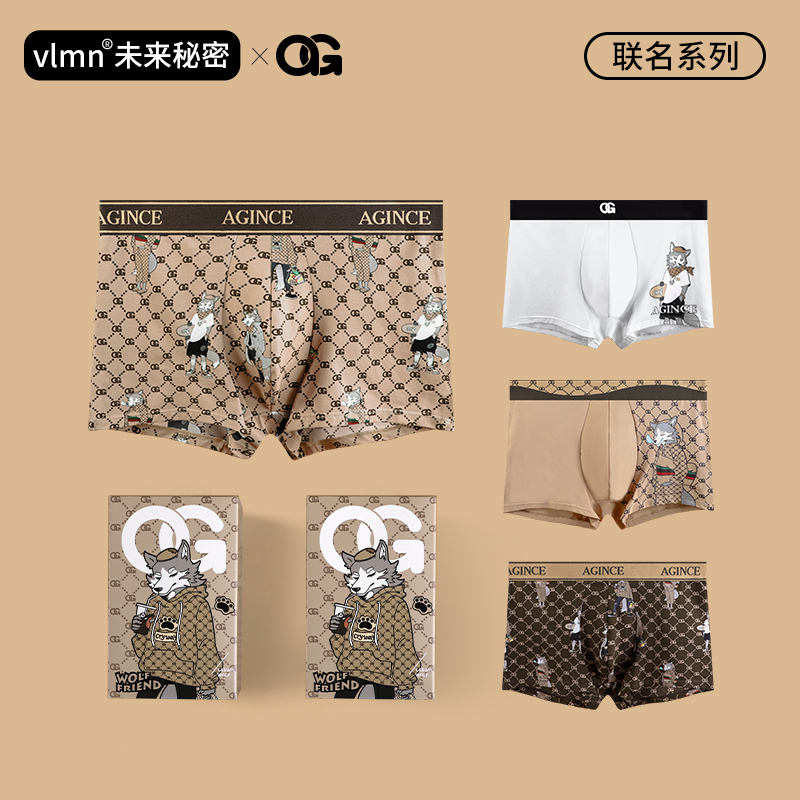 【产品名称:vlmn潮牌男士内裤潮流棉质男生四角裤卡通印花抗菌短裤/狼朋友】