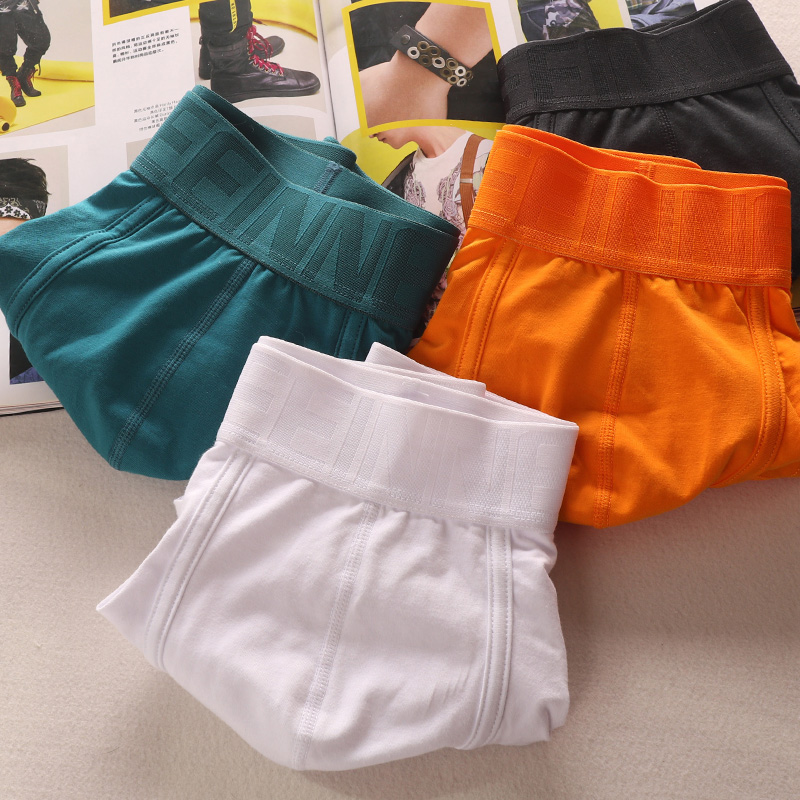 【产品名称:3条 舒适宽腰边简约素色纯棉男士内裤透气青年男生纯色平角裤底裤】