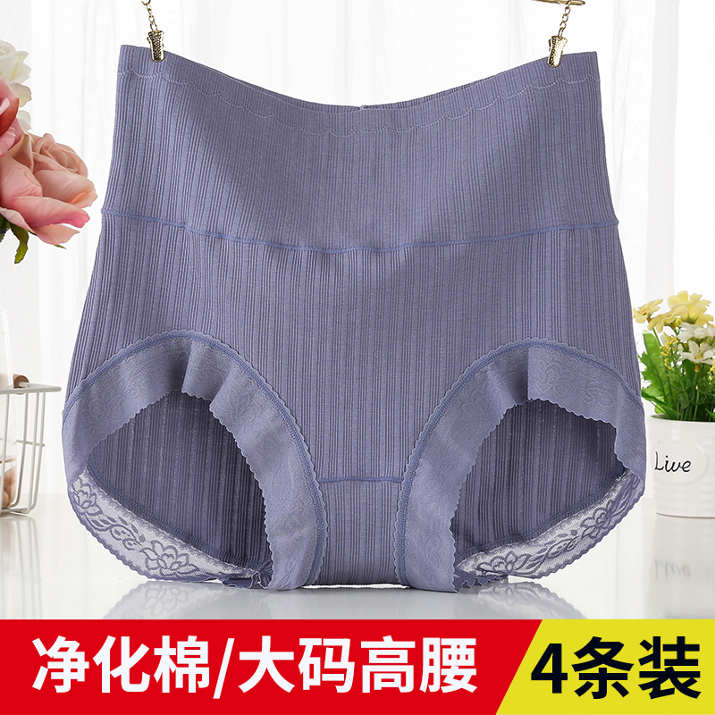 【产品名称:高腰收腹莫代尔棉内裤女大码胖mm200斤性感三角裤产后蕾丝过肚脐】