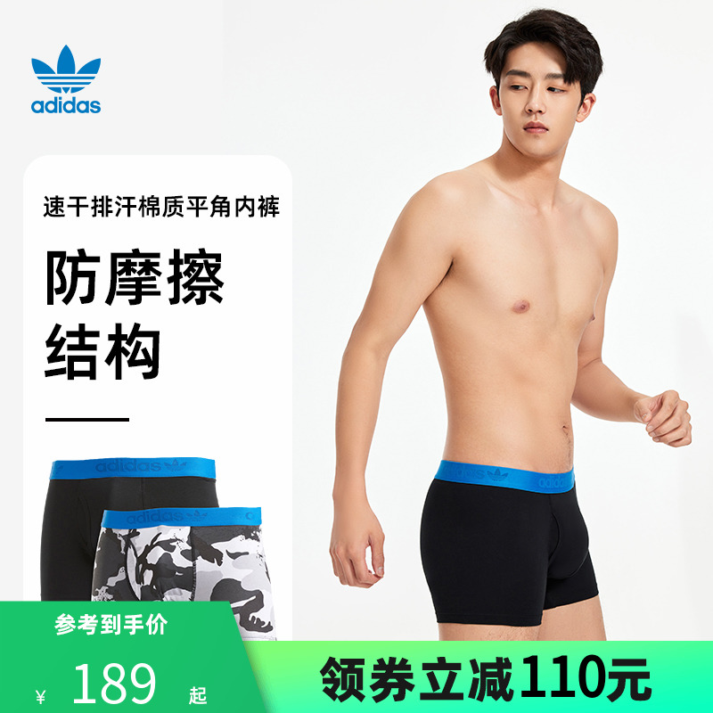 【产品名称:阿迪达斯弹力舒适速干四角裤男士棉质防摩擦运动平角内裤男2条装】