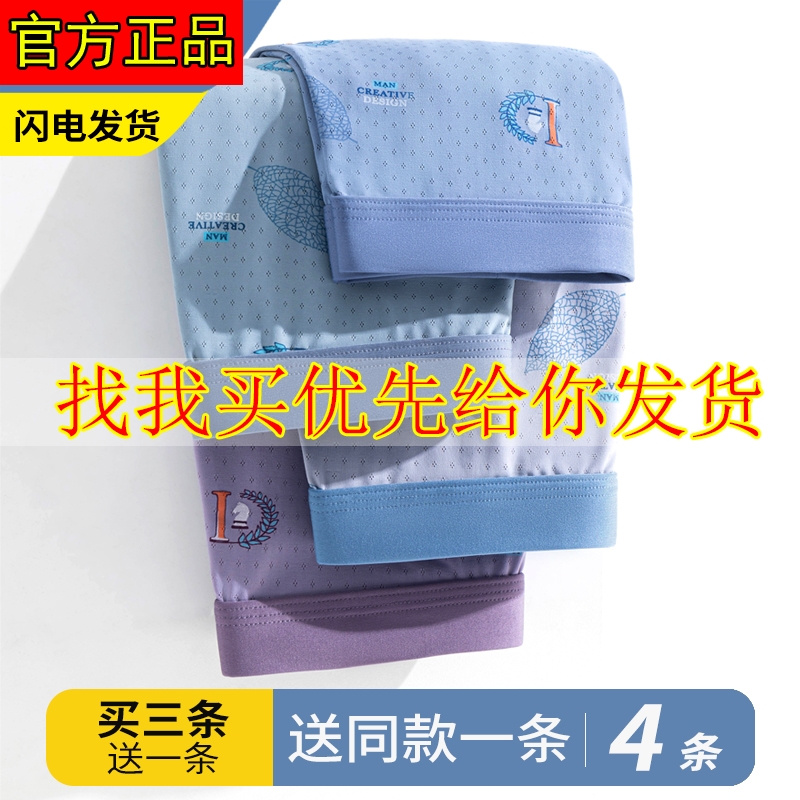 【产品名称:健之尊4条礼盒装无痕冰丝男士内裤中腰抑菌透气平角裤夏季网孔】