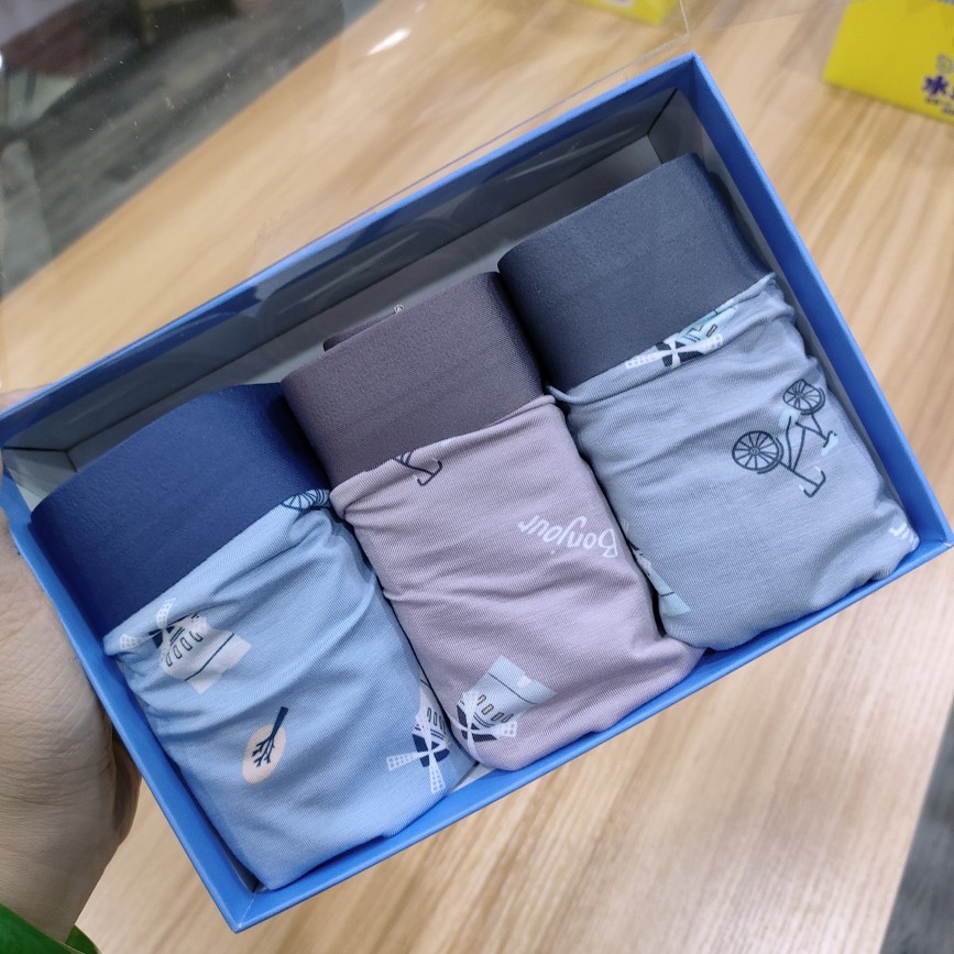 【产品名称:3条盒装新品三尖男士内裤四角潮流时尚莫代尔棉舒适透气蚕丝抗菌】