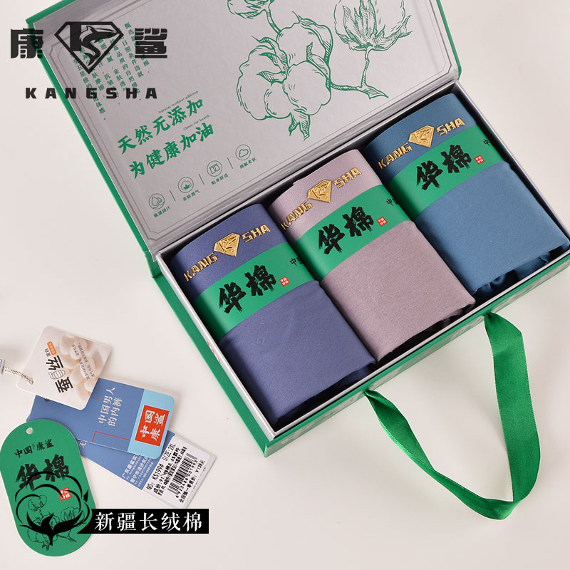 【产品名称:康鲨男士内裤3条装华棉中腰平角内裤纯棉无痕明筋裤衩裤头短裤薄】