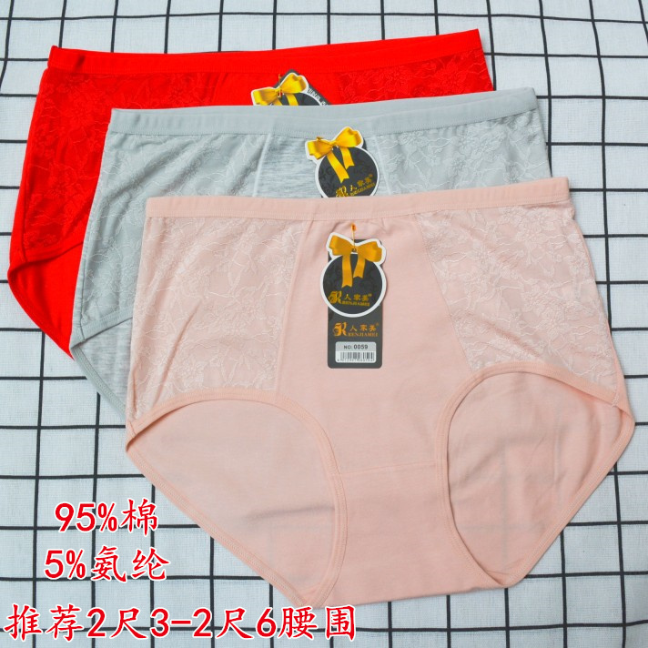 【产品名称:人家美0059女士提花全棉高腰内裤中老年妈妈短裤大码奶奶三角内裤】