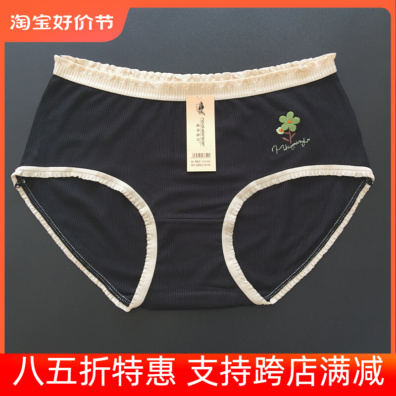 【产品名称:娜蒂香儿女士螺纹莫代尔柔软包臀亲肤少女款中腰三角小花边内裤】