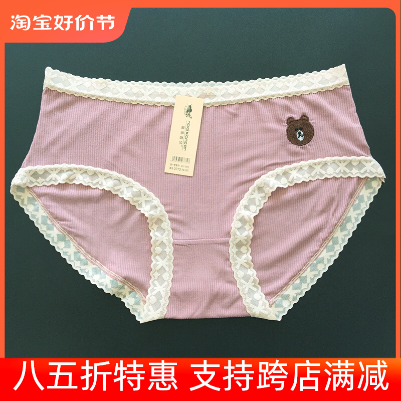 【产品名称:娜蒂香儿女士蕾丝边条纹竹纤维纯色柔软少女款三角无痕内裤3772】
