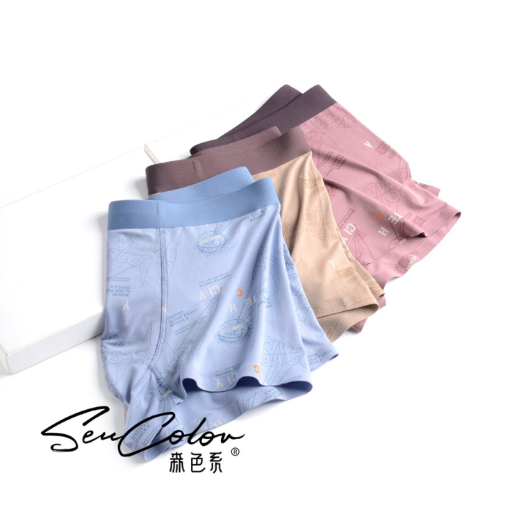 【产品名称:黛美芮新款森色系220501四角无痕花色高弹力平角男士内裤三条盒装】