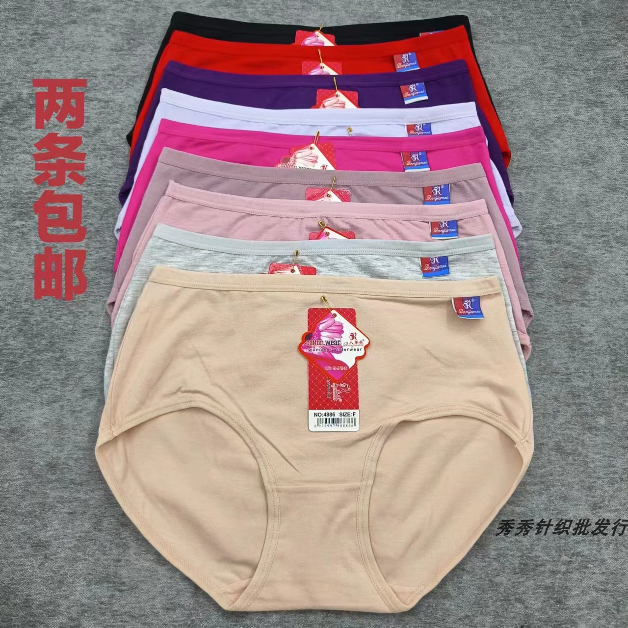 【产品名称:2条包邮人家美4886纯棉内裤柔软吸汗纯色弹力透气棉中腰提臀底裤】