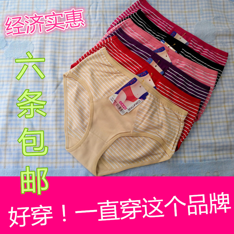 【产品名称:正品彩伊婷女士全棉条纹内裤女中腰纯棉细橡筋瘦小款三角底裤0801】