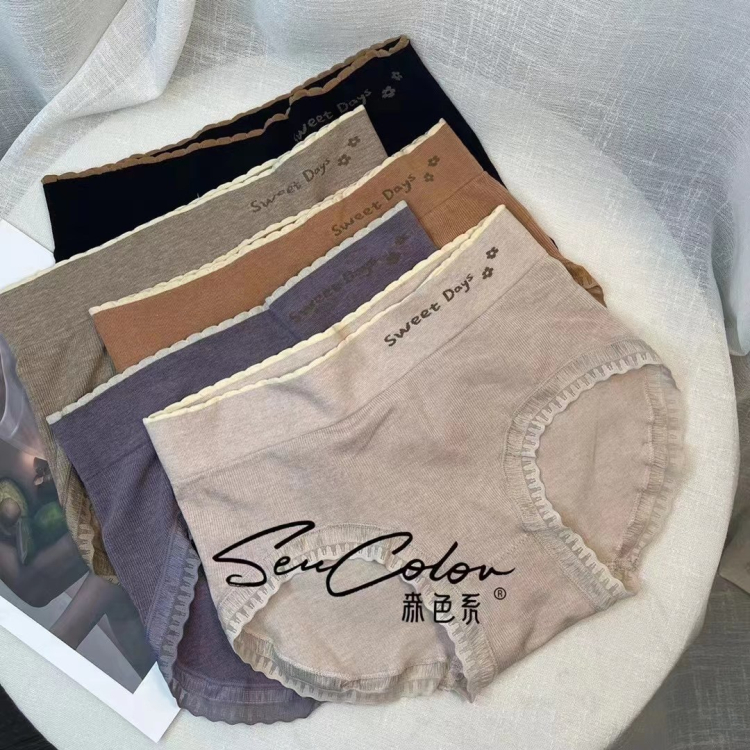 【产品名称:韩版新款2107字母蕾丝边性感五条装包臀高弹透气中高腰三角内裤女】