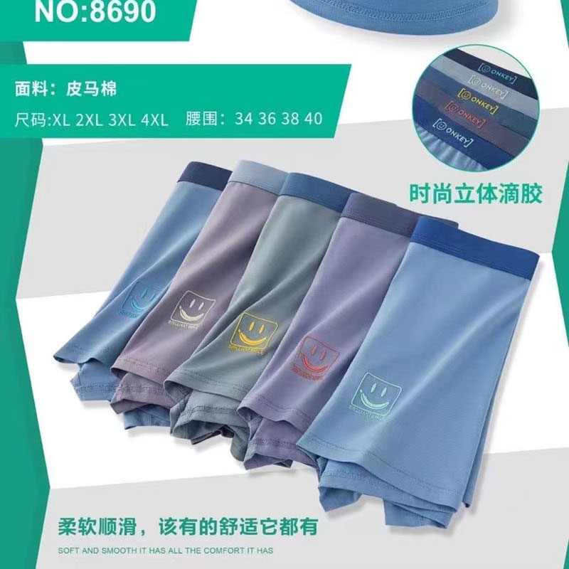 【产品名称:尊将8690舒感皮马棉XL-4XL平角抗菌纯棉纯色柔软四角内裤男】