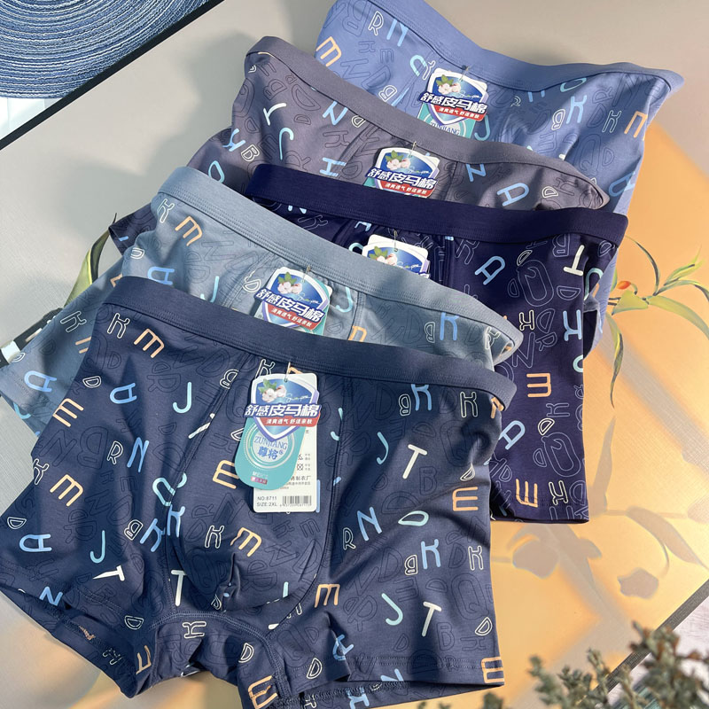 【产品名称:尊将8711舒感皮马棉XL-4XL纯棉潮流抗菌纯棉U凸透气平角内裤男新】