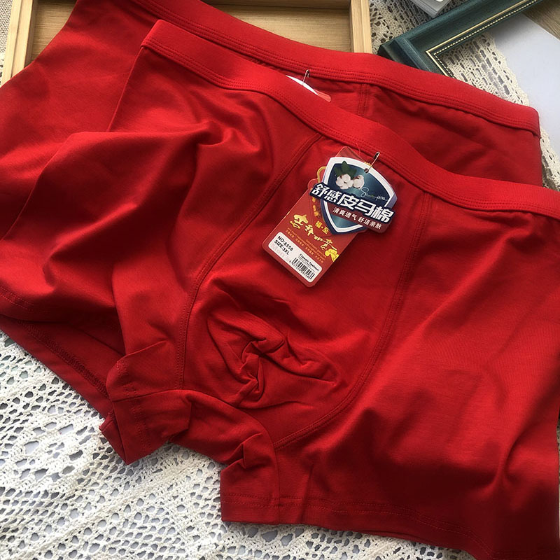 【产品名称:尊将6558大红本命年XL-6XL结婚舒感皮马棉福字平角纯棉提花男内裤】