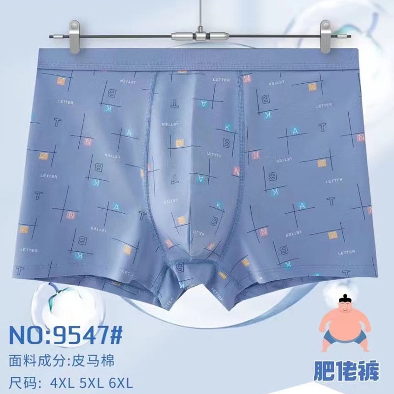 【产品名称:尊将9547舒感皮马棉4XL-6XL平角抗菌纯棉加肥加大四角肥佬内裤男】