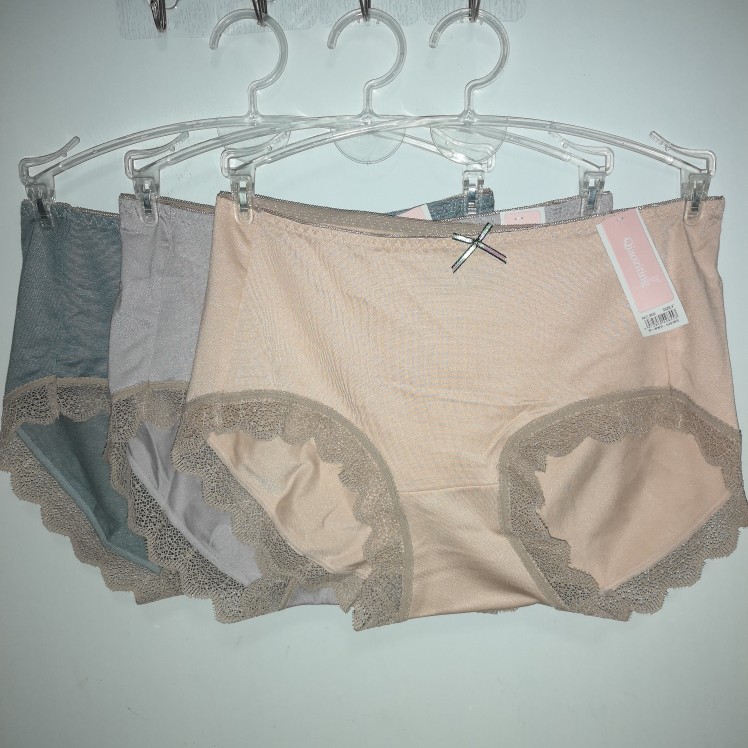 【产品名称:俏姿婷女士蕾丝边透气简约纯色中腰三角裤内裤855】
