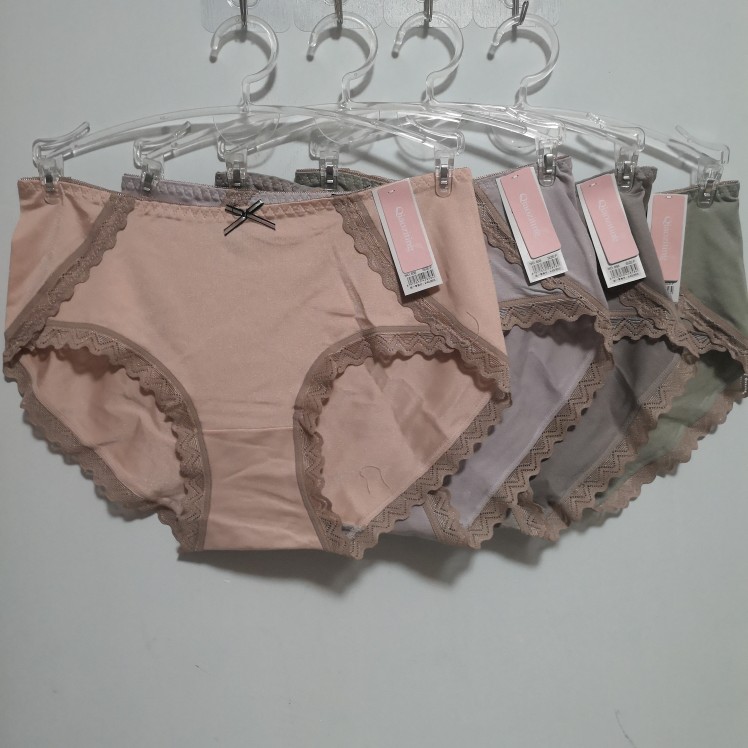 【产品名称:俏姿婷女士蕾丝边透气简约纯色中腰三角裤内裤858】