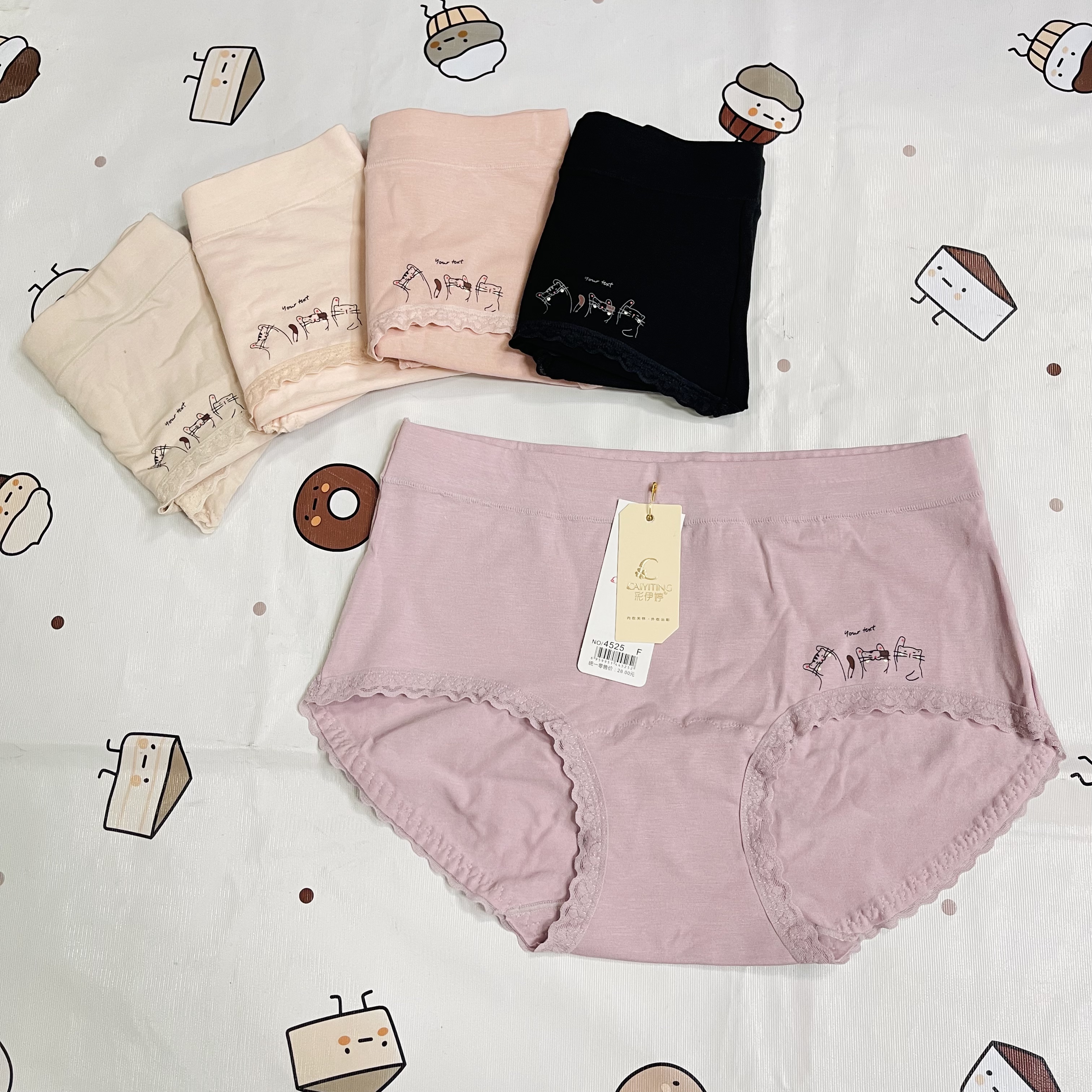 【产品名称:彩伊婷4525纯棉内裤蕾丝边猫咪少女中腰舒适宽松吸汗 满五条包邮】