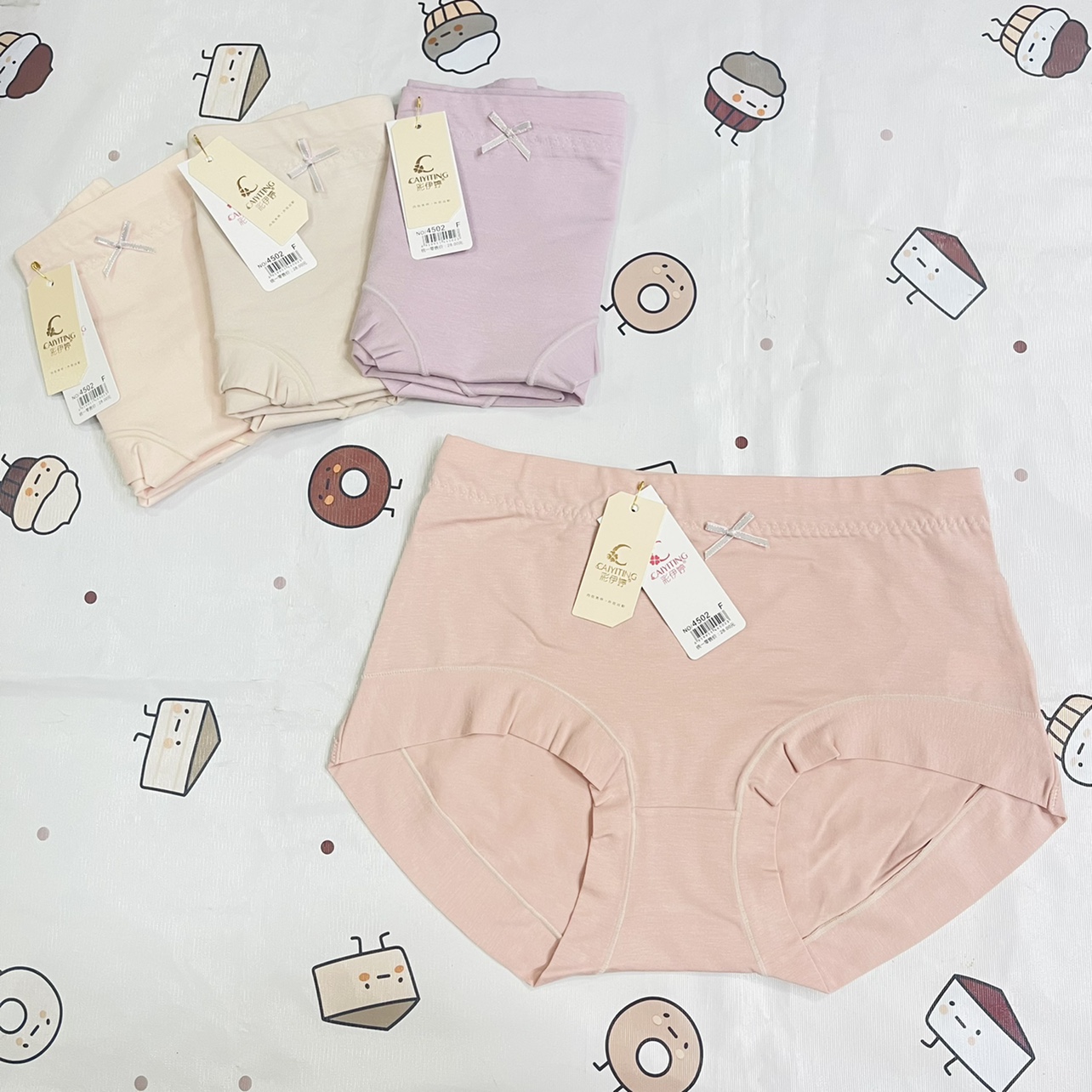 【产品名称:彩伊婷4502纯棉内裤荷叶边女士中腰蝴蝶结舒适宽松吸汗满五条包邮】
