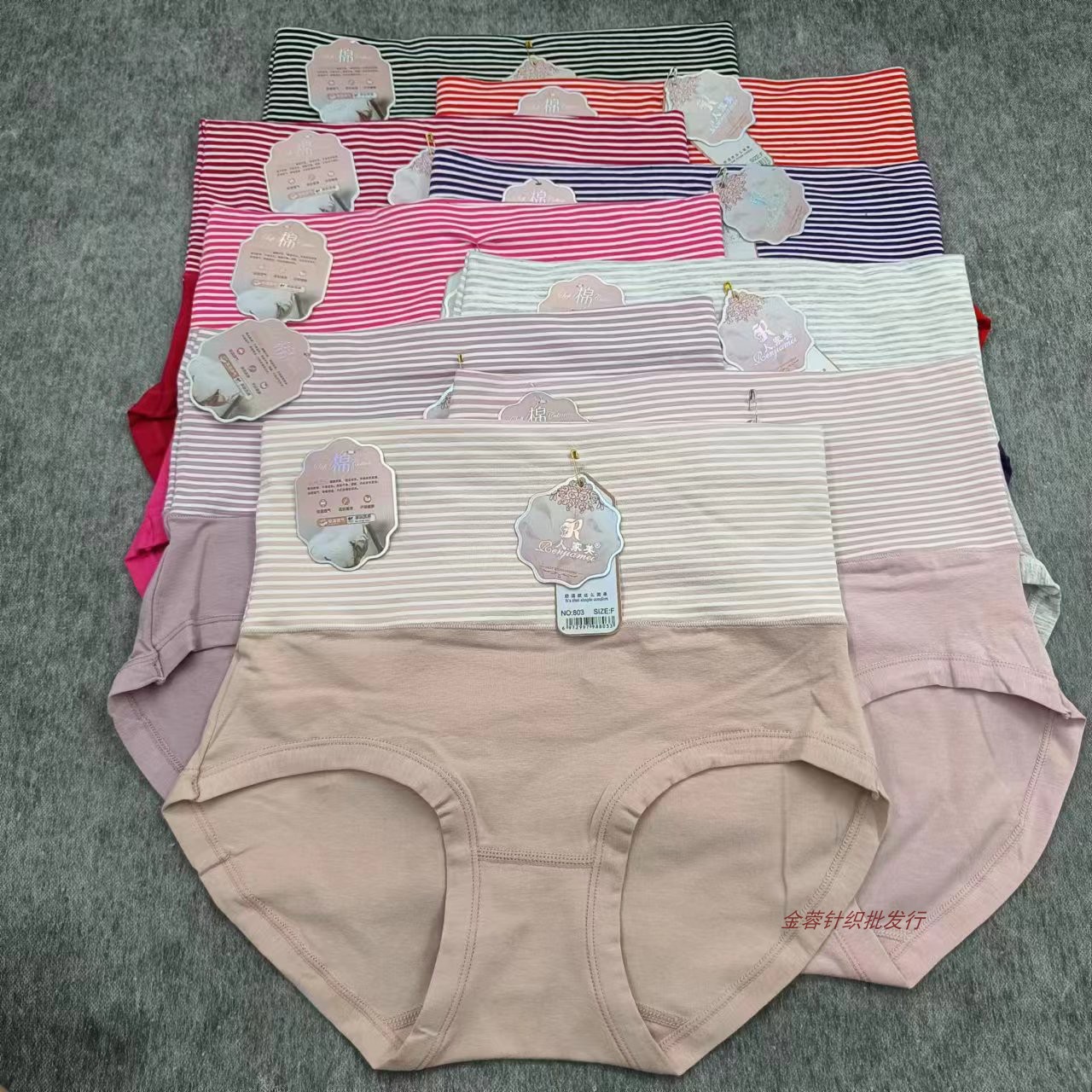 【产品名称:人家美803全棉高腰收腹提臀内裤纯棉条纹透气舒适莱卡棉三角裤女】