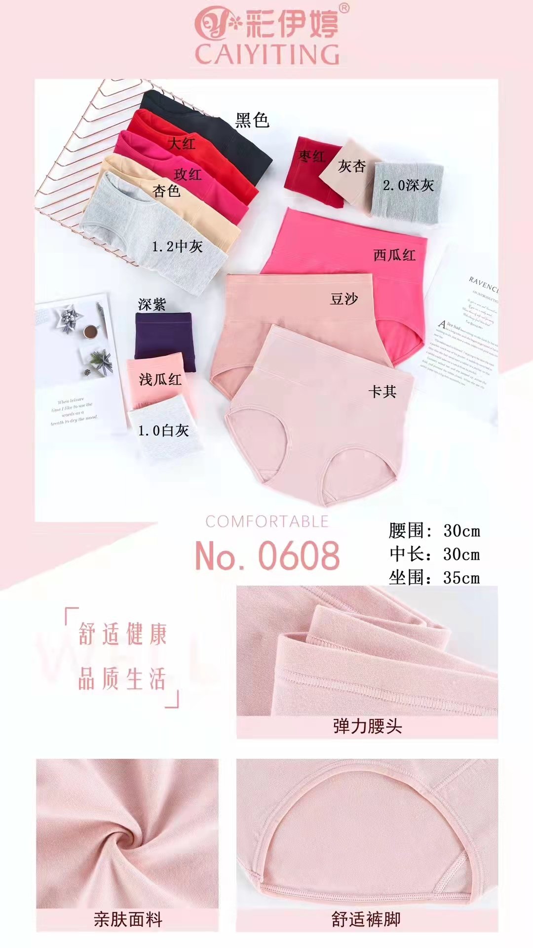 【产品名称:彩伊婷新款棉质面料 0608女士大码高腰纯棉纯色内裤】