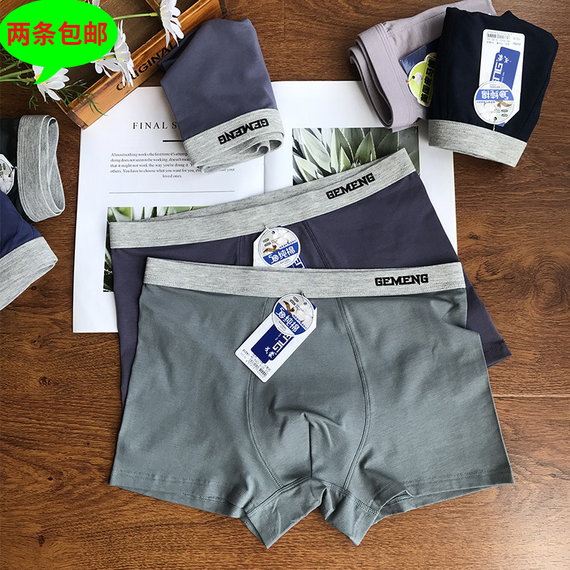 【产品名称:戈蒙002男纯棉内裤纯色中腰亲肤透气吸汗抗菌平角加大两条包邮】