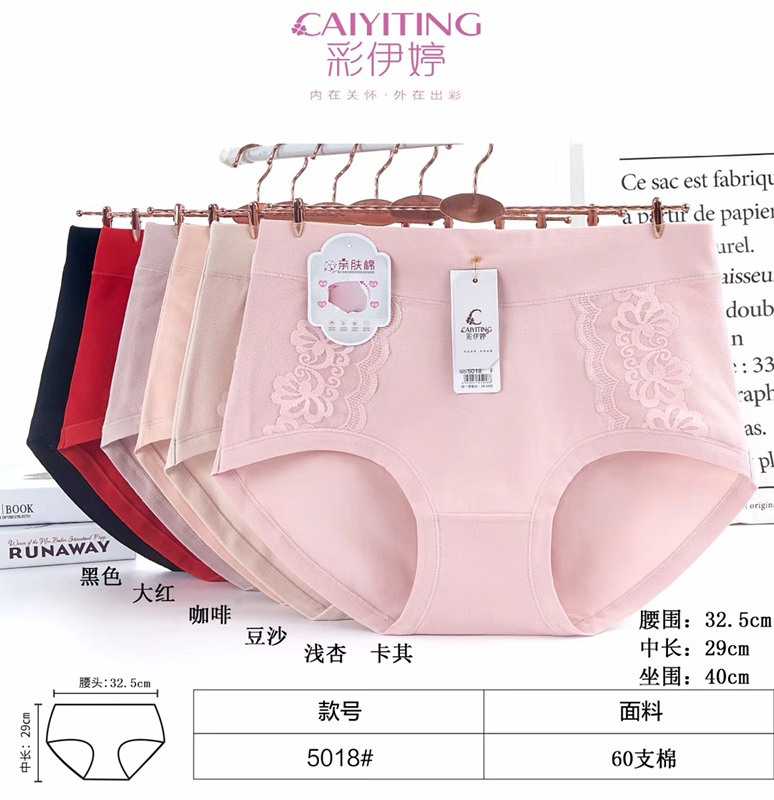 【产品名称:彩伊婷加大码蕾丝花纯色女士中腰三角内裤5018】