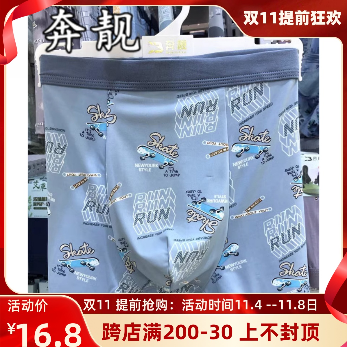 【产品名称:奔靓冰丝内裤男士青年潮透气速干平角裤中腰抗菌短裤夏季薄款裤衩】