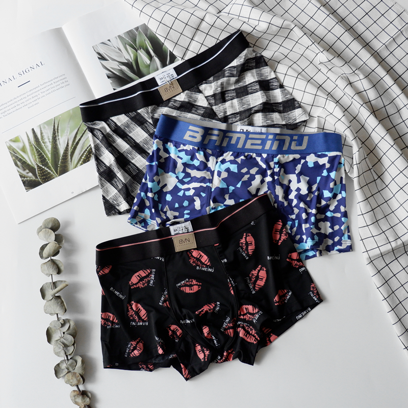【产品名称:芭美奴冰丝男内裤平角裤中腰无痕印花潮男短裤性感超薄青年四角裤】