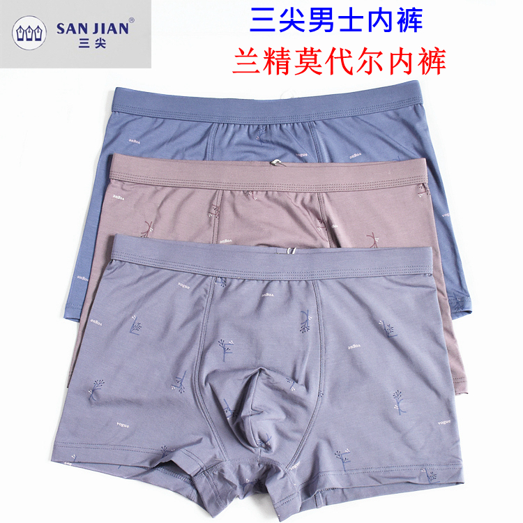 【产品名称:男士内裤平角四角三尖莫代尔棉高腰裤头兰精莫代尔】