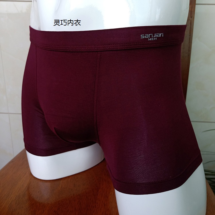 【产品名称:三尖正品男士内裤新款舒适兰精木代尔纯色平角内裤四条包邮】