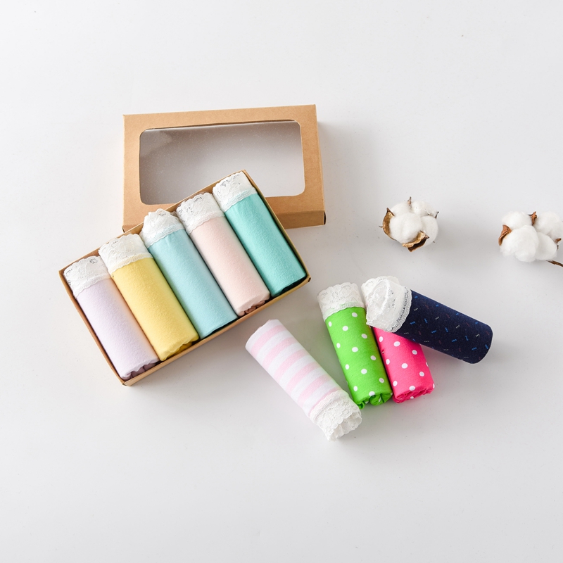 【产品名称:源头工厂包邮5条礼盒装 纯棉蕾丝边精致女士内裤 简约甜美三角裤】