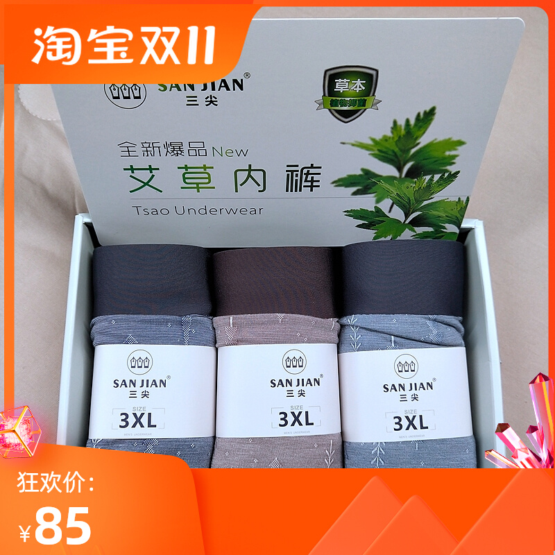 【产品名称:三尖男士内裤四角短裤艾草纤维抗菌透气平角裤潮流个性裤头7025】
