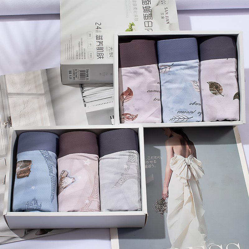 【产品名称:三尖男士内裤平角裤数码印花中腰莫代尔蚕蛹蛋白抗菌透气3条装】