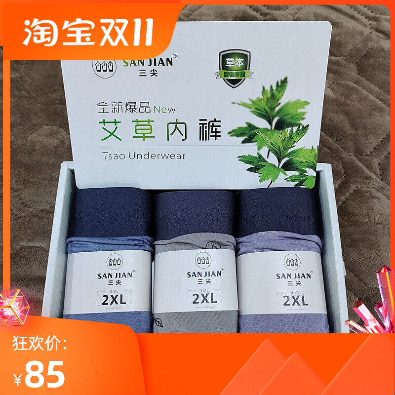 【产品名称:三尖3条男士内裤莫代尔四角裤平角宽松透气艾草纤维抗菌裤头7035】