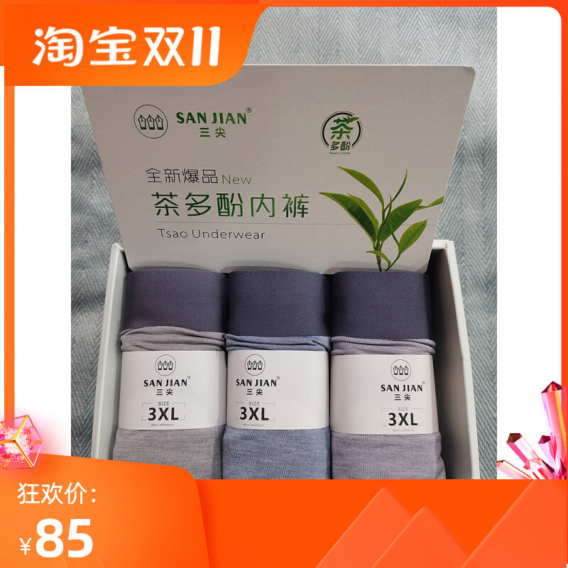 【产品名称:三尖7059茶多酚无痕内裤男士平角裤莫代尔抗菌四角短裤打底裤】