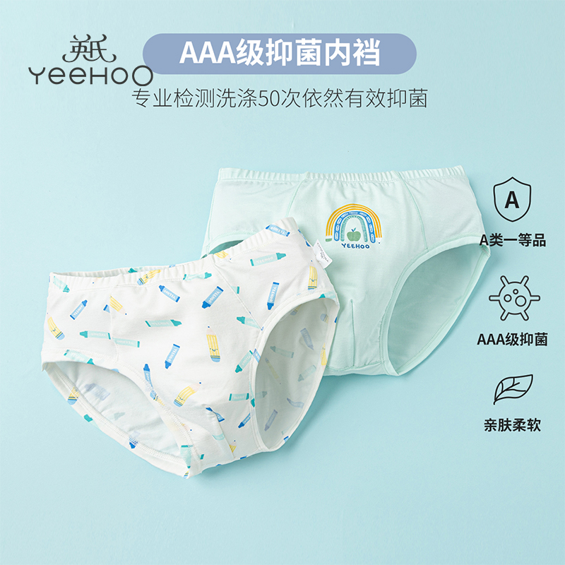 【产品名称:英氏儿童内裤三角裤男女童舒适四季款A类弹力舒适3A抑菌短裤2条装】